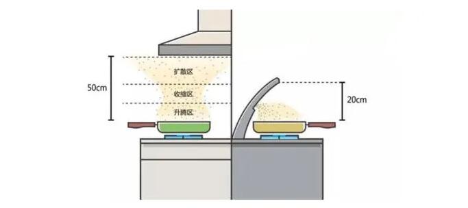 如果是傳統(tǒng)的吸油煙機,無論是頂吸還是側(cè)吸式,安裝位置通常距離灶臺50公分以上,油煙已經(jīng)進入擴散區(qū),所以吸油煙率能達到70%實屬不易。