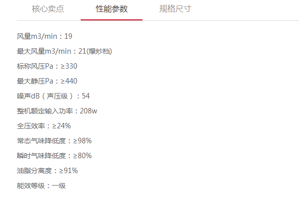 上圖就是388s的參數(shù),可以看到這款油煙機的風量達到19m?/min,而市面上只要在17m?以上的就都可以算是大吸力油煙機,我們這款不但達到19m?,最大風量更是達到21m?,完全符合任何家庭的烹飪要求。