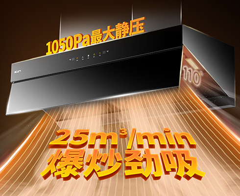 自動擋煙屏能夠有效鎖住油煙,防止其外溢,配合風道超大吸力,解決廚房油煙問題。